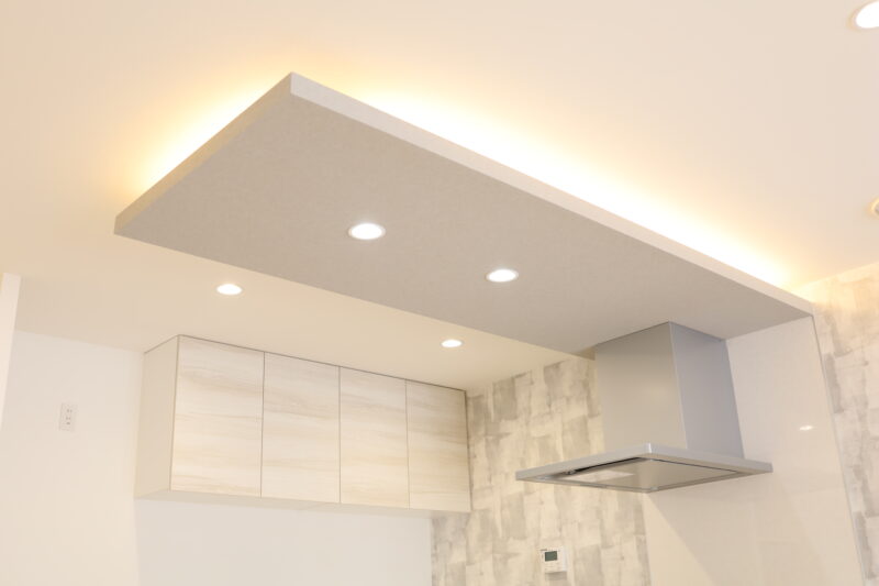 2つ目は、KTの間接照明です!キッチンの上部を下がり天井にして、間接照明にしました。