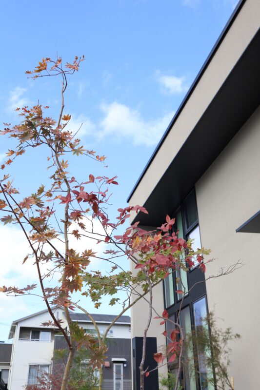 そしてシンボルツリーにコハウチワカエデとナツハゼをおき、季節の変わり目を感じれます。