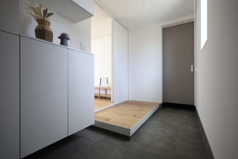 玄関では扉を開けて右の窓から光が差し込み、夜はLDKの扉から漏れた光がお出迎えしてくれます。