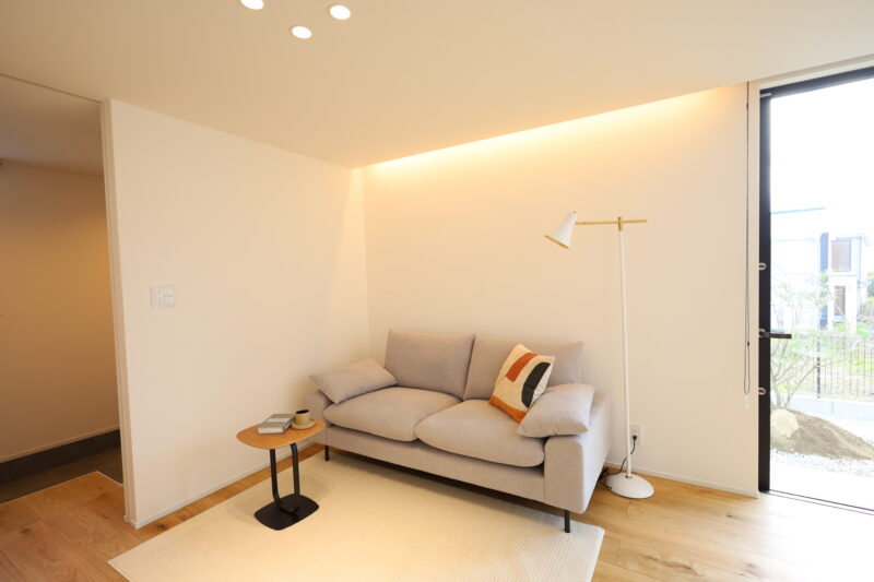 間接照明に彩られたリビングで過ごす時間は、きっと最高の思い出になるはず。