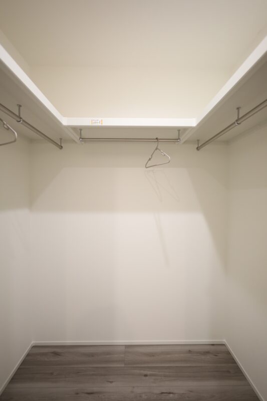 1階の脱衣室は3帖あり、物干しバーを設置しているので洗濯機から服を出してすぐ服をかけれます。