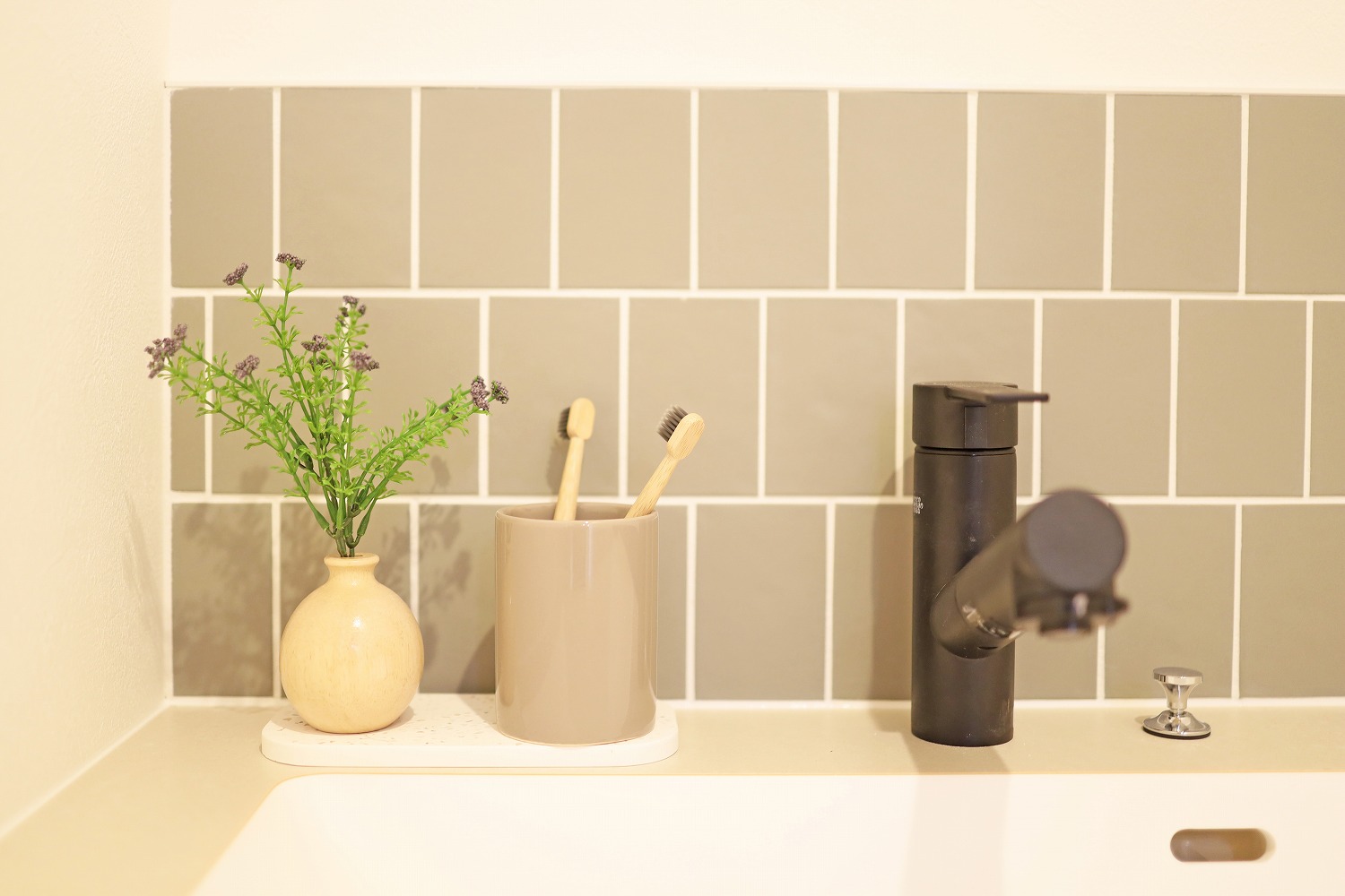 - 無垢材やタイルを要所に使用し心地よく落ち着いた空間