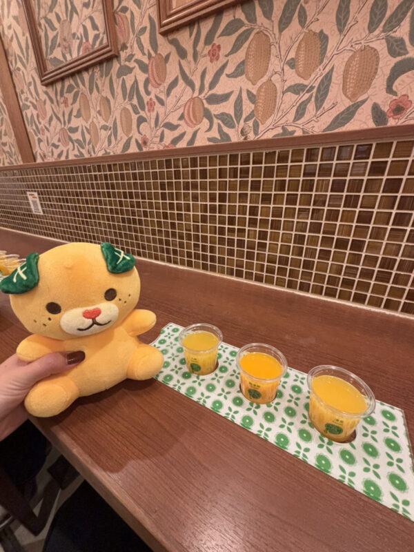 ということで、有名な蛇口からミカンジュースのお店に行きまして、何種類ものミカンジュースの中から3種を厳選しました。