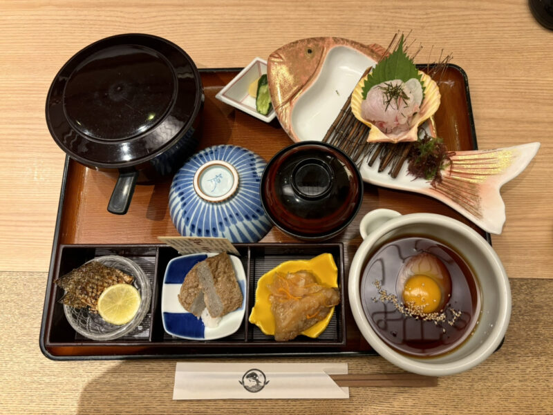 鯛のお刺身を卵とお出汁に漬けて、卵かけご飯のようにして食べるタイプの鯛めしでした。